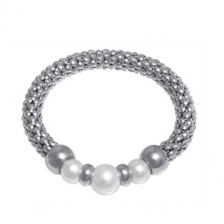 STAINLESS STEEL ELASTIC BRACELET WITH 3 SYNTHETIC PEARL AND STAINLESS STEEL BEAD