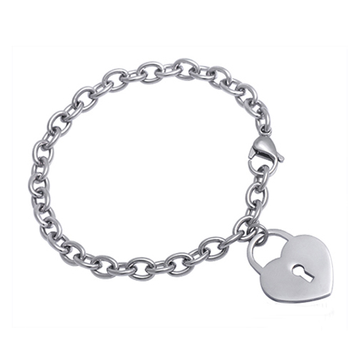 STAINLESS STEEL BRACELET WITH HEART SHAPE KEY LOCK CHARM ALL IN STEEL COLOR