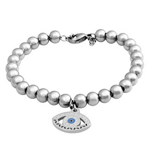 STAINLESS STEEL BRACELET ALL IN S/S COLOR WITH EYES CHARMS WITH BEADS CHAIN