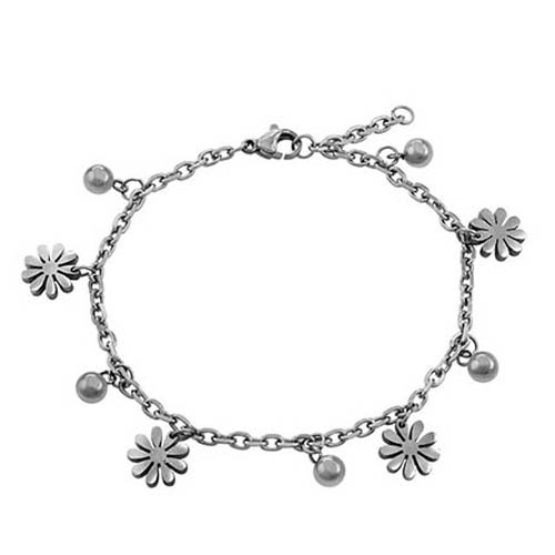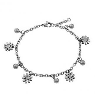 STAINLESS STEEL BRACELET WITH 5 S/S BEADS WITH 4 BUTTERFLIES ALL IN STEEL COLOR
