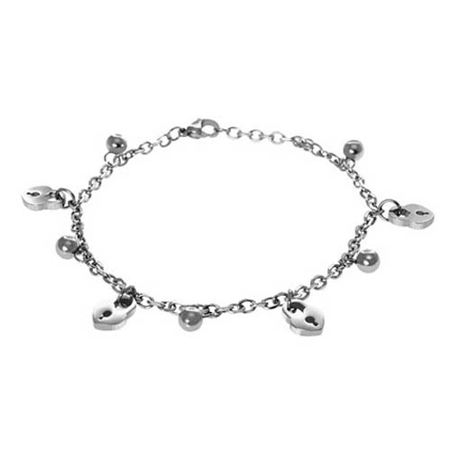 STAINLESS STEEL BRACELET WITH 5 S/S BEAD WITH 4 HEART LOCKS ALL IN STEEL COLOR