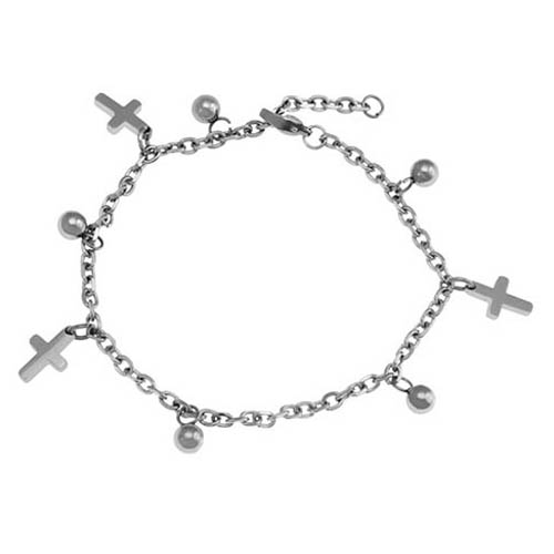 STAINLESS STEEL BRACELET WITH 5 S/S BEAD WITH 4 CROSS CHARMS