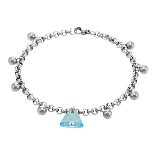 STAINLESS STEEL BRACELET WITH S/S BEADS WITH TRIANGLE CRYSTAL ALL IN STEEL COLOR