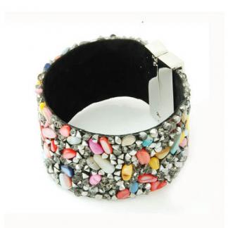 BRACELET WITH PLATED COPPER LOCK AND COLORFULL STONES GLUED
