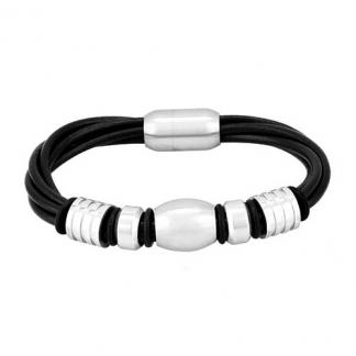 STAINLESS STEEL BRACELET IN LEATHER WITH MAGNET LOCK WITH S/S BEADS