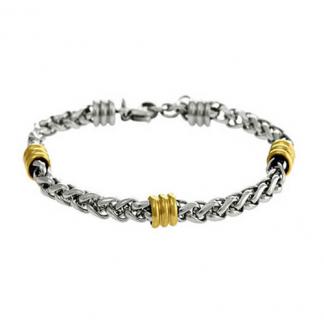 STAINLESS STEEL BRACELET WITH IPG CYLINDRICAL RING IN IPG TWO TONE