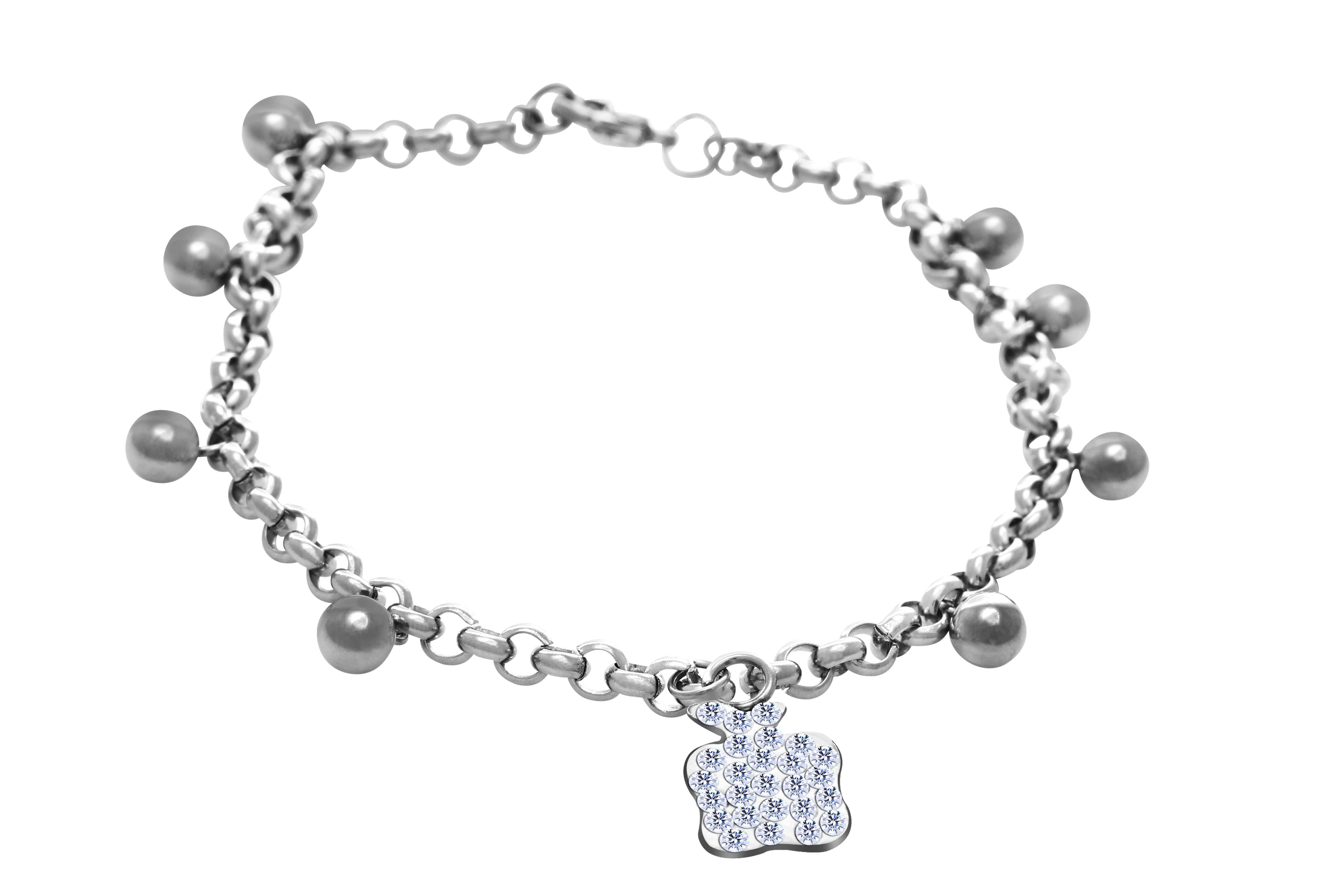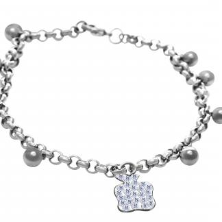 STAINLESS STEEL BRACELET WITH S/S BEADS WITH APPLE PENDANT WITH CZ