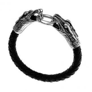 STAINLESS STEEL BRACELET IN BROWN PU WITH 2 S/S SNAKE HEAD WITH S/S BUCKLE