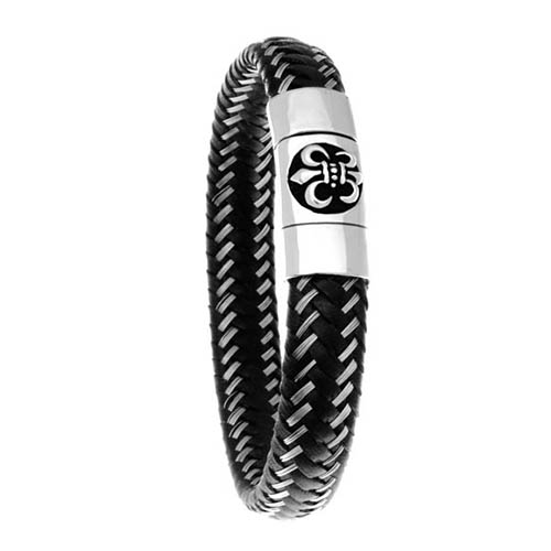 STAINLESS STEEL BRACELET IN BLACK OR BROWN LEATHER WITH S/S WIRE WITH MAGNET LOCK