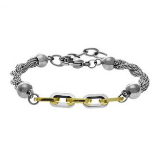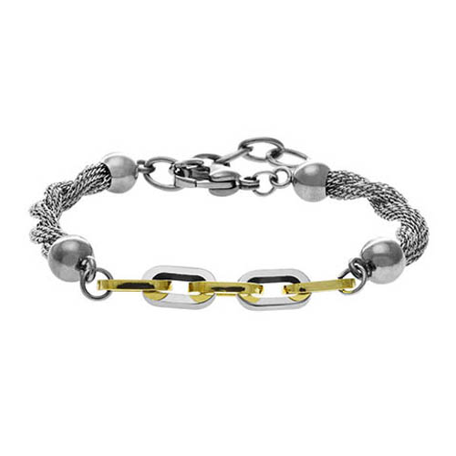 STAINLESS STEEL BRACELET WITH CHAIN IN IPG 2 TONE WITH 4 BEADS AND S/S WIRE