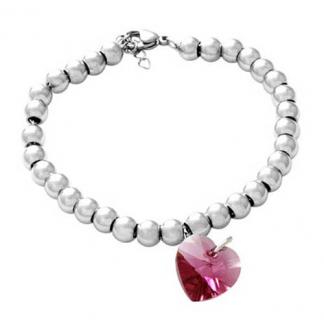 STAINLESS STEEL BRACELET ALL IN STAINLESS STEEL WITH S/S BEADS WITH CRYSTAL HEART