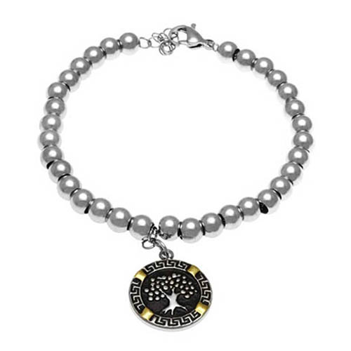 STAINLESS STEEL BRACELET IN IPG TWO TONES IN BLACK COLOR WITH TREE OF LIFE PENDANT IN CIRCLE SHAPE