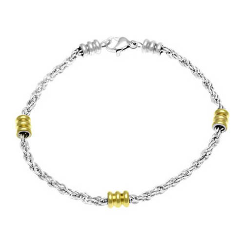 STAINLESS STEEL BRACELET IN IPG TWO TONE WITH 3 IPG CYLINDRICAL RING