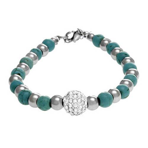 STAINLESS STEEL BRACELET WITH GREEN & S/S BEADS CHAIN WITH CZ BALL IN CENTER