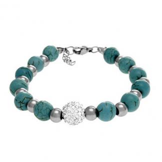STAINLESS STEEL BRACELET WITH GREEN & S/S BEADS CHAIN WITH CZ BALL IN CENTER