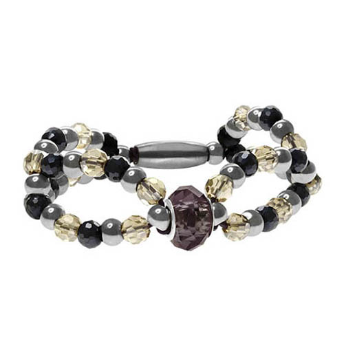 STAINLESS STEEL BRACELET WITH S/S BEADS BLUE & WHITE CRYSTAL BEADS 3 PATTERN WITH PURPLE CRYSTAL