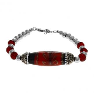 STAINLESS STEEL BRACELET IN S/S COLOR & 1 STONE IN THE CENTER RED AND BLACK WITH CZ IN ENDS & CRYSTALS RED.