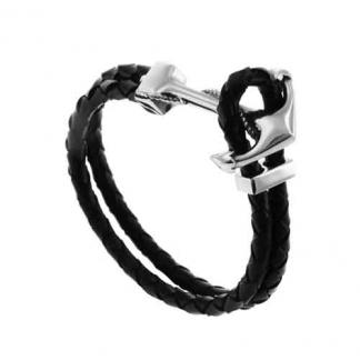 STAINLESS STEEL BRACELET WITH BLACK LEATHER