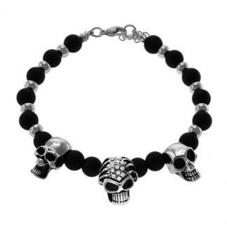 STAINLESS STEEL BRACELET WITH LAVA STONE AND 3 SKULS IN THE CENTRE