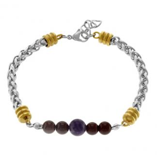 STAINLESS STEEL BRACELET WITH GARNET & AMATHYST AND STEEL BEADS