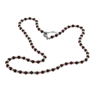STAINLESS STELL ELASTIC BRACELET WITH GARNET ANS STEEL BALL IN 3 ROLLS