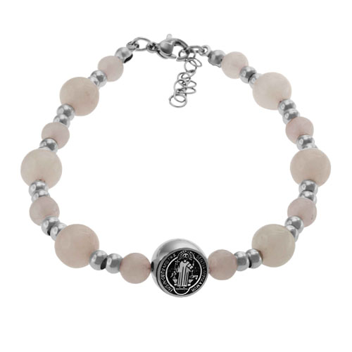 STAINLESS STEEL BRACELET WITH STEEL BALL AND THE ROSE QUARTZ STONE ALL IN SS COLOR
