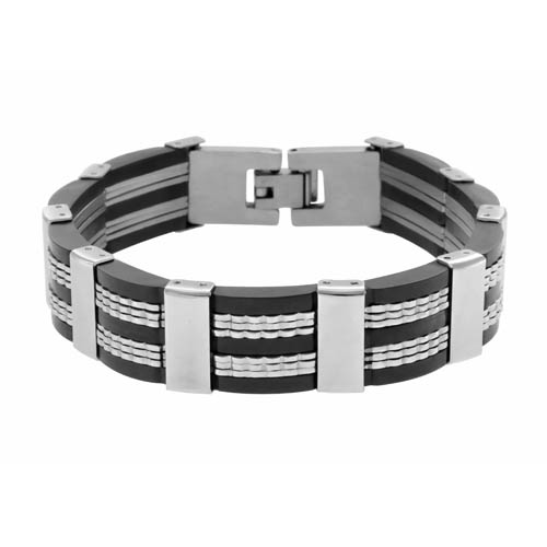 STAINLESS STEEL BRACELET WITH BLACK PU / ALL IN SS COLOR