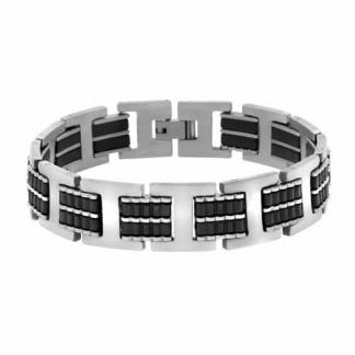 STAINLESS STEEL BRACELET WITH BLACK PU / ALL IN SS COLOR