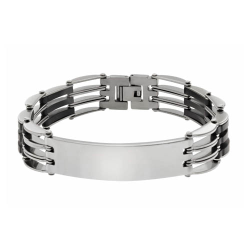 STAINLESS STEEL BRACELET WITH BLACK PU / ALL IN SS COLOR