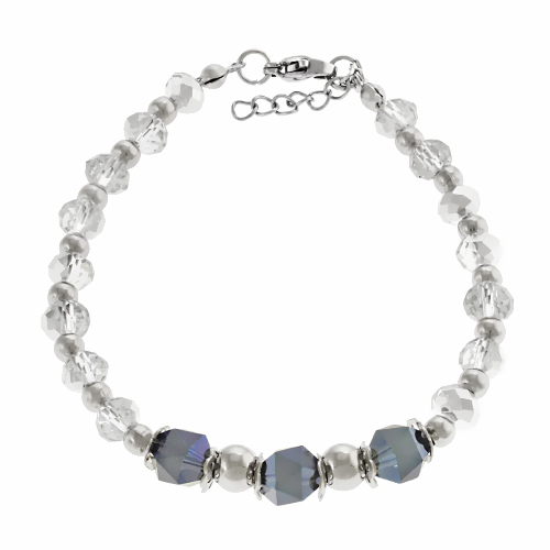 STAINLESS STEEL BTACELET WITH AB WHITE CRYSTAL BEADS AND STEEL BEADS