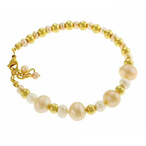 STAINLESS STEEL BRACELET IN IPG COLOR. WITH NATURE PEARL IN WHITE &ROSE COLOR