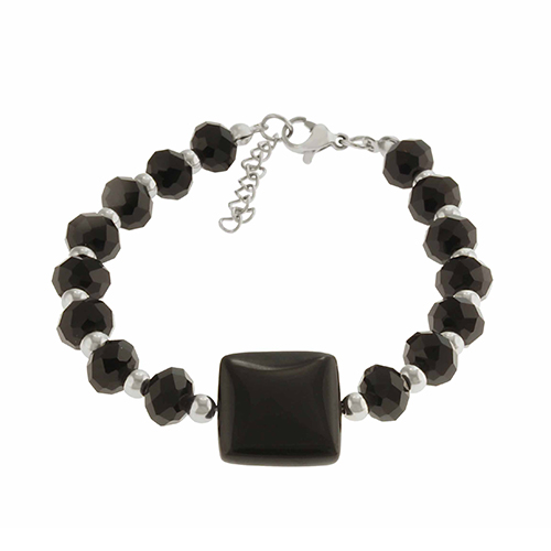 WITH BLACK CRYSTAL BEADS AND ONE BLACK ONXY IN THE CENTRE