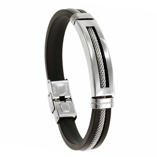 STAINLESS STEEL RUBBER BRACELET ALL IN SS COLOR