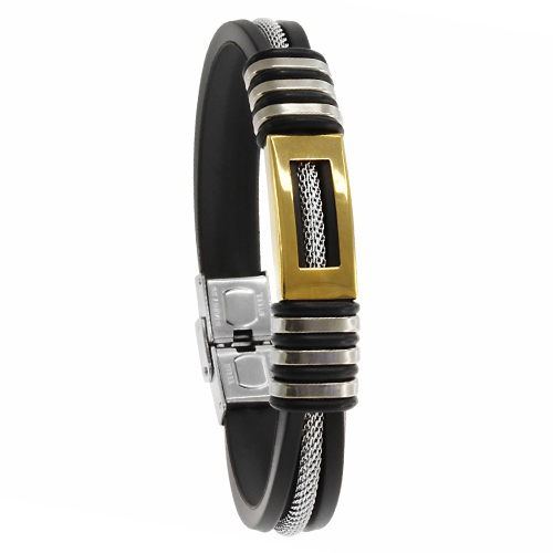 STAINLESS STEEL RUBBER BRACELET IN IPG TWO TONE