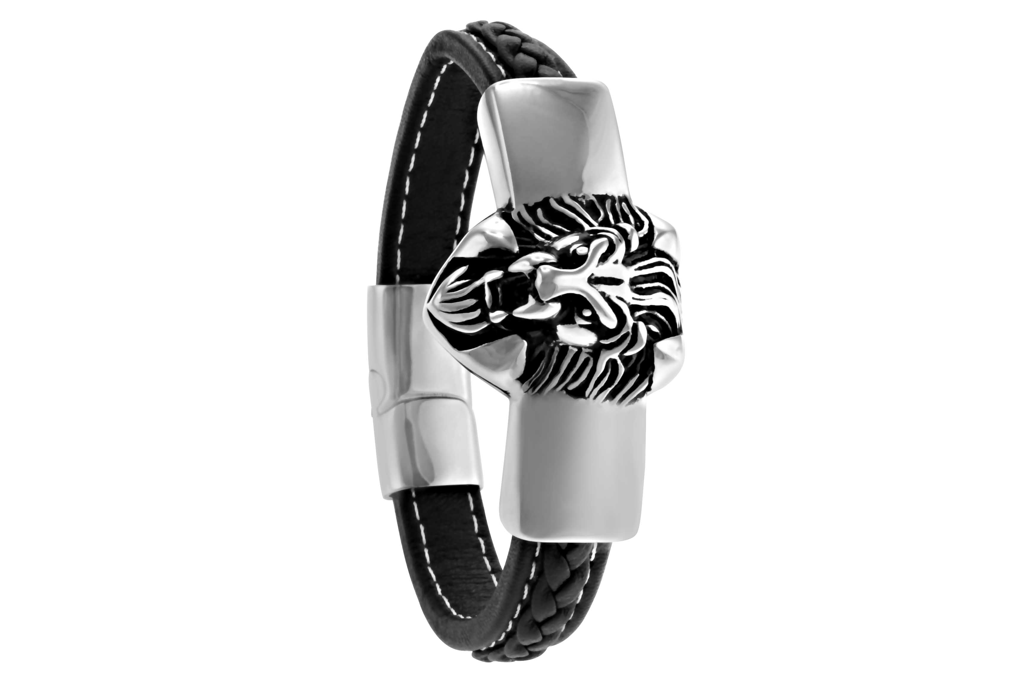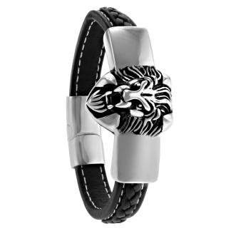 STAINLESS STEEL BRACELET WITH BLACK LEATHER
