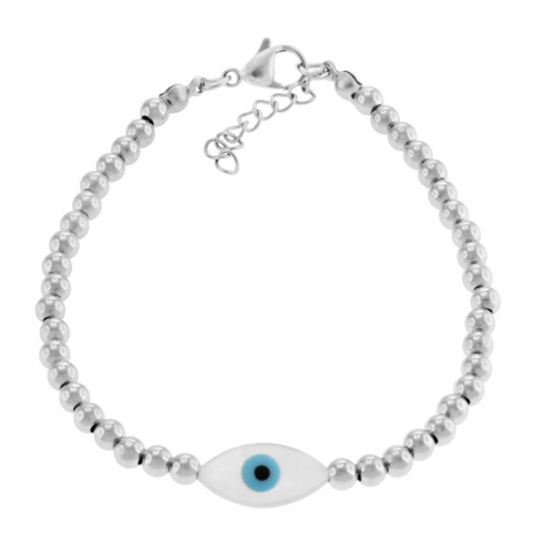 STAINLESS STEEL BRACELET WITH 4MM STEEL BALL AND ONE EYE SHELL IN THE CENTRE