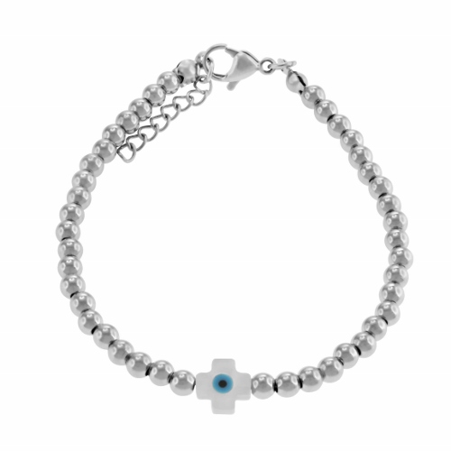 STAINLESS STEEL BRACELET WITH 4MM STEEL BALL AND ONE cross SHELL IN THE CENTRE