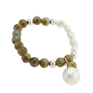 STAINLESS STEEL ELASTIC BRACELET WITH FLASH STONE AND FRESH WATER PEARL
