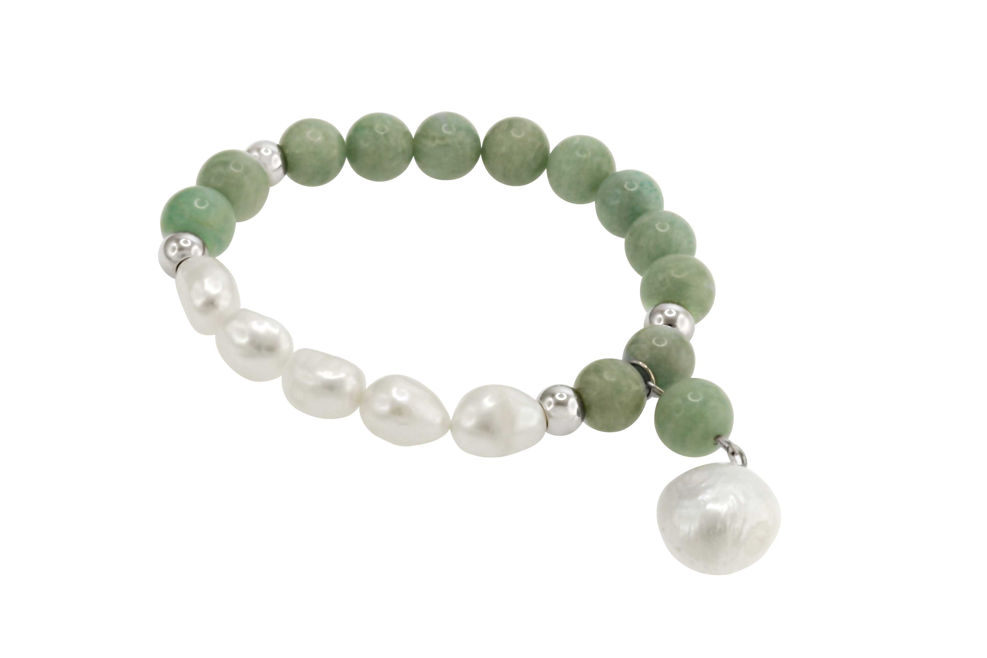STAINLESS STEEL ELASTIC BRACELET WITH AMAZONE STONE AND FRESH WATER PEARL