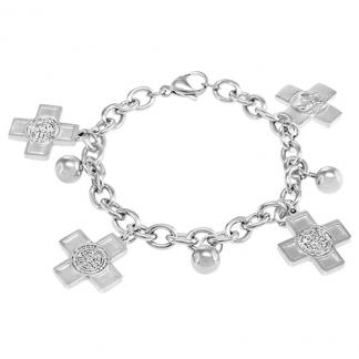 STAINLESS STEEL BRACELET WITH CROSS CHARMS ALL IN SS COLOR.