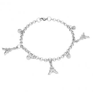 STAINLESS STEEL BRACELET WITH HANGING CHARM OF TOWER.