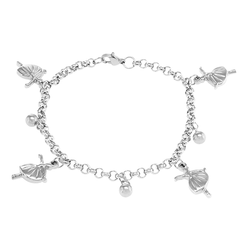 STAINLESS STEEL BRACELET WITH HANGING CHARM OF DANCING GIRL.