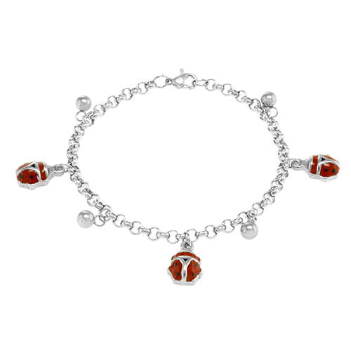 STAINLESS STEEL BRACELET WITH HANGING CHARM OF LADYBIRD.