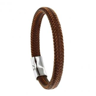 STAINLESS STEEL LEATHER BRACELET IN BROWN COLOR