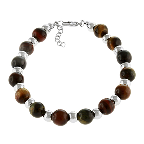 STAINLESS STEEL BRACELET WITH TIGER EYE STONE AND STEEL BALL