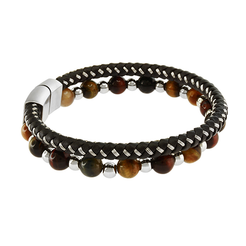 ONE ROW WITH TIGER EYE STONE & STEEL BEADS