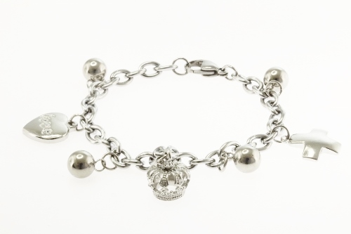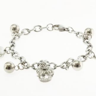 STAINLESS STEEL BRACELET WITH 3 CHARMS AND 4 STEEL BALLS. ALL IN SS COLOR