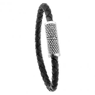 STAINLESS STEEL BRACELET WITH BLACK LEATHER&MAGNET LOCK