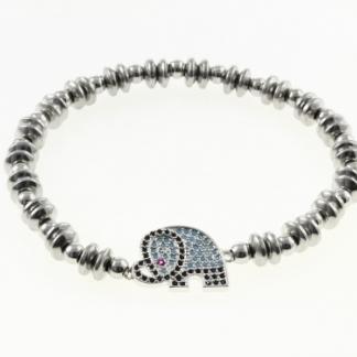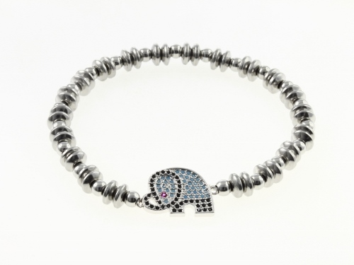 STAINLESS STEEL ELASTIC BRACELET WITH STEEL BEADS AND ONE COPPER ELEPHANT WITH ZIRCON IN BLACK AND BLUE COLOR