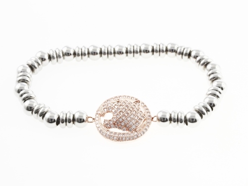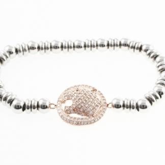STAINLESS STEEL ELASTIC BRACELET WITH STEEL BEADS AND ONE COPPER PENDANT WITH ZIRCON IN THE CENETR IN IPR COLOR